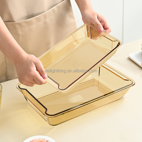 ガラスベーキングトレイ高ホウケイ酸ガラス耐熱オーブン安全なマイクロ波可能なベーキングパンアンバーガラス