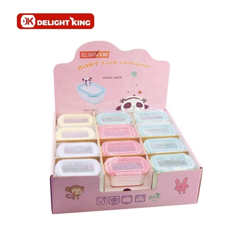 Sevimli bebek ürünleri fırın güvenli yüksek borosilikat bebek cam depolama yiyecek kutusu mini cam bebek maması konteyner seti